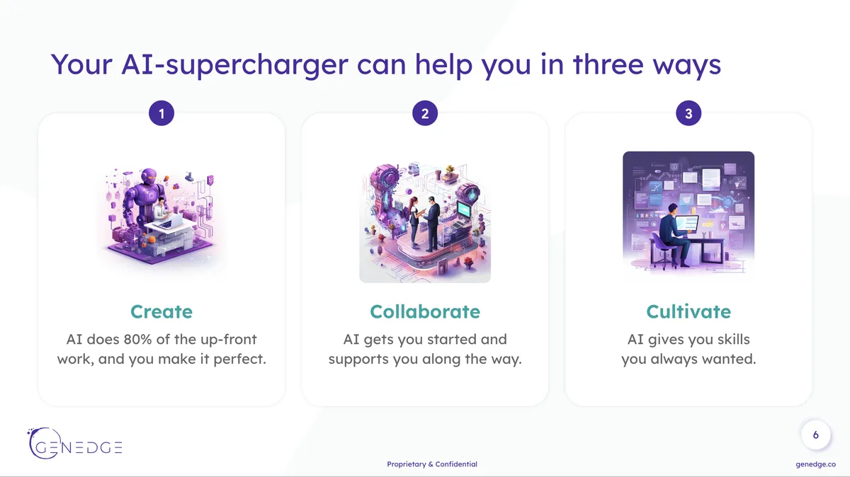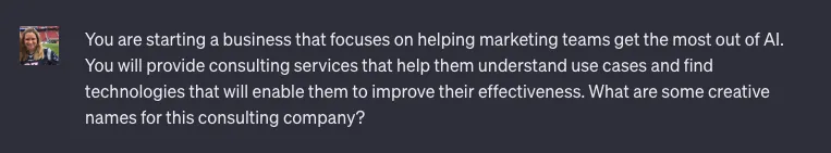 Once ChatGPT gave me a list of names, I told it the names I liked and followed up with prompts such as "Can you riff on [name1, name2, etc.] and create names that include the benefits of AI or clever AI-related wordplay?" I eventually landed on the name "GenEdge." Confirming the domain's availability sealed my decision.