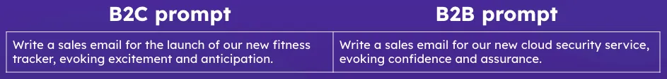 Why use it: Role and emotion prompting allow you to customize the tone, style, and emotional appeal of your communications, making them more relatable and engaging for your audience. By instructing the AI to adopt a specific persona or evoke particular emotions, you can create content that connects more deeply with your customers.
