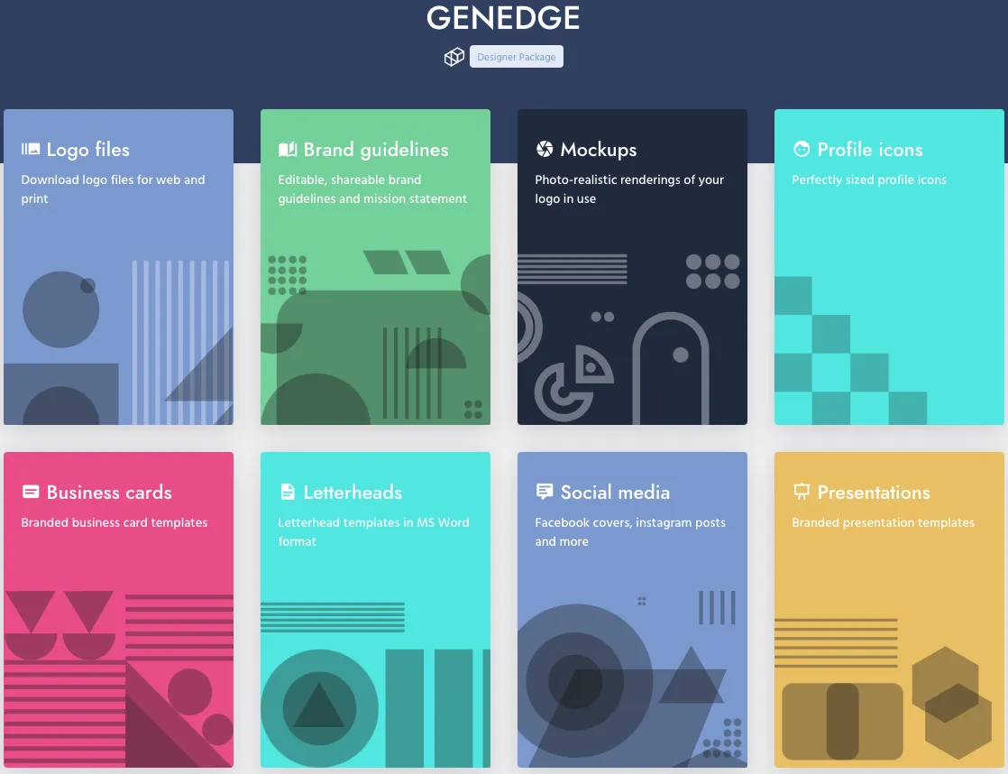 After about 2-3 hours with each service, Brandmark delivered a logo that resonated with me. Following minor tweaks, it was perfect. The $65.00 designer package provided a comprehensive set of brand assets, which included templates for documents, slides, letterheads, business cards, and more—a solid foundation for brand identity.