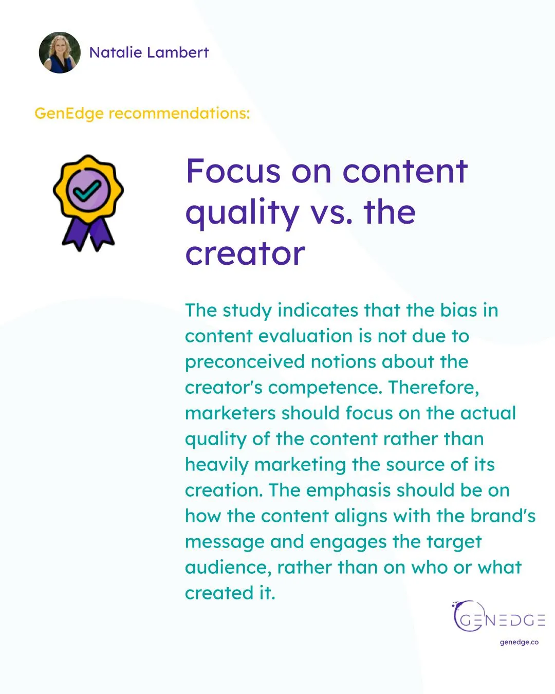 Focus on content quality vs. the creator. The study indicates that the bias in content evaluation is not due to preconceived notions about the creator's competence. Therefore, marketers should focus on the actual quality of the content rather than heavily marketing the source of its creation. The emphasis should be on how the content aligns with the brand's message and engages the target audience, rather than on who or what created it.