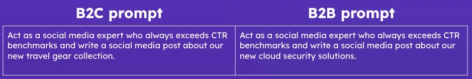 Why use it: Few-shot prompting allows you to provide specific examples within prompts to generate content that closely aligns with your brand's voice and target audience. Including a few relevant examples (shots) can guide AI to produce more tailored and contextually accurate content, making it more engaging and effective.